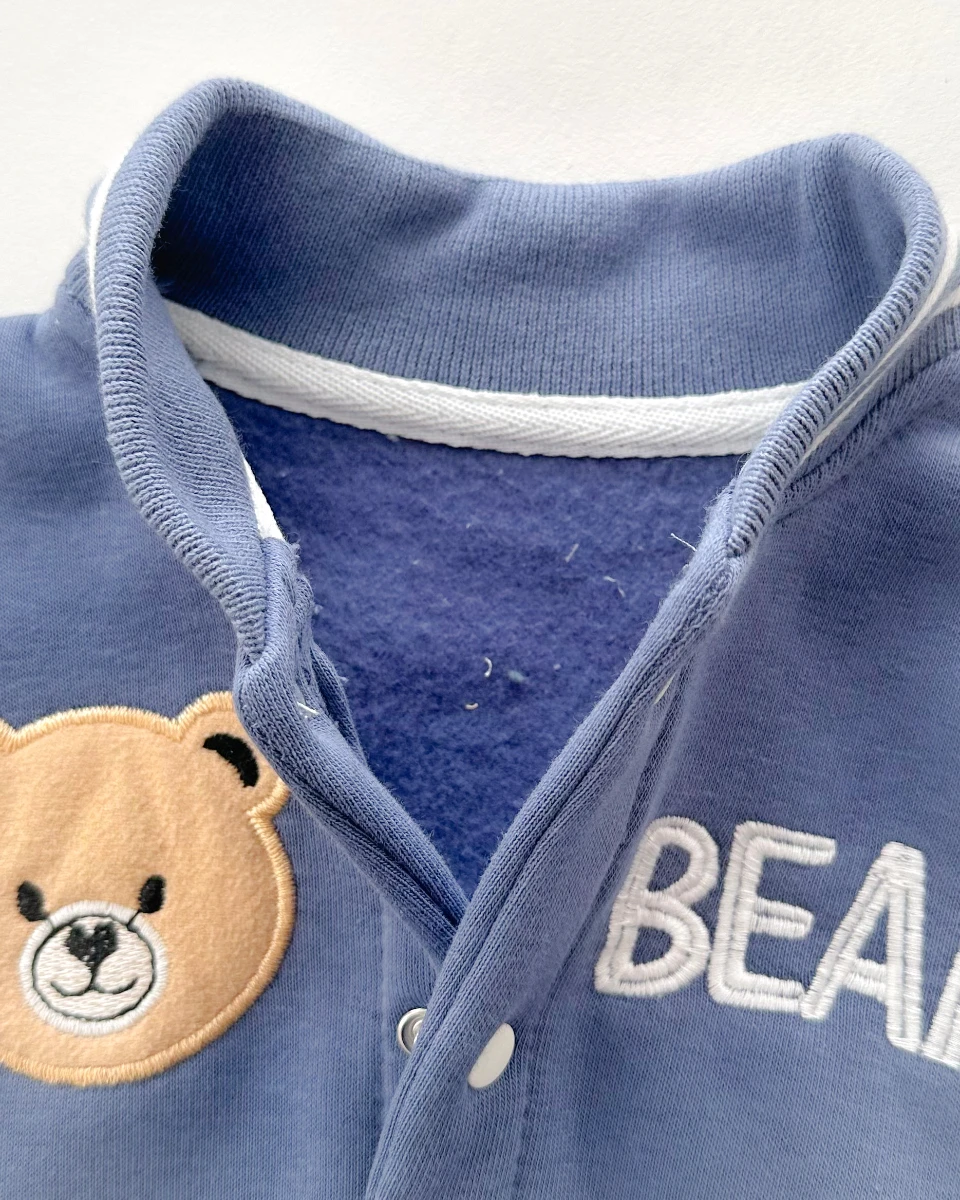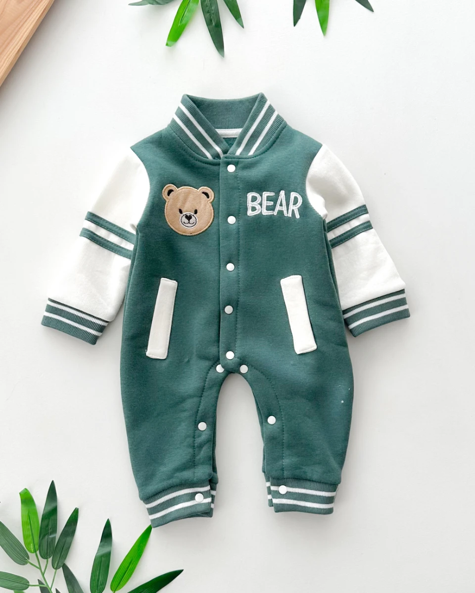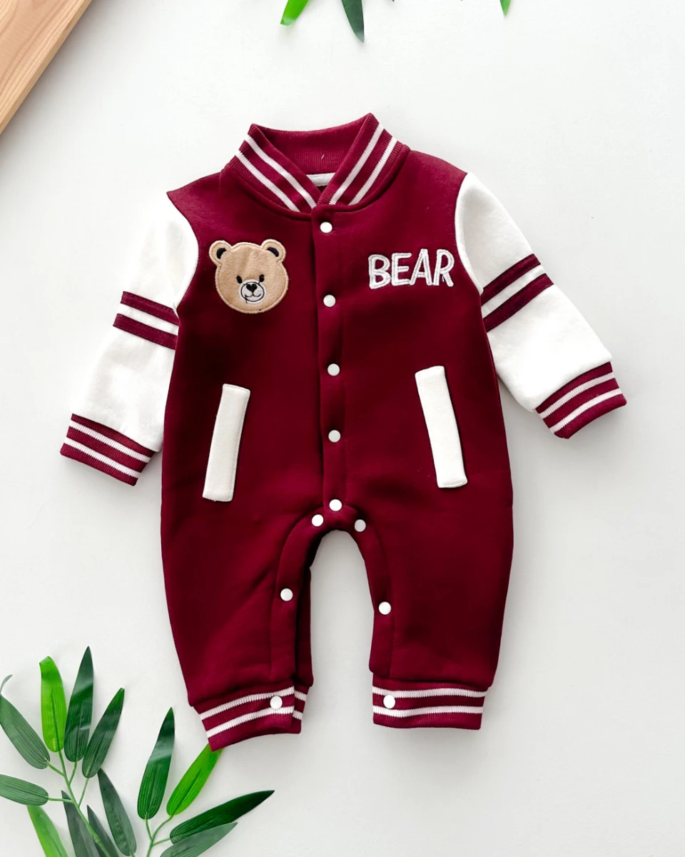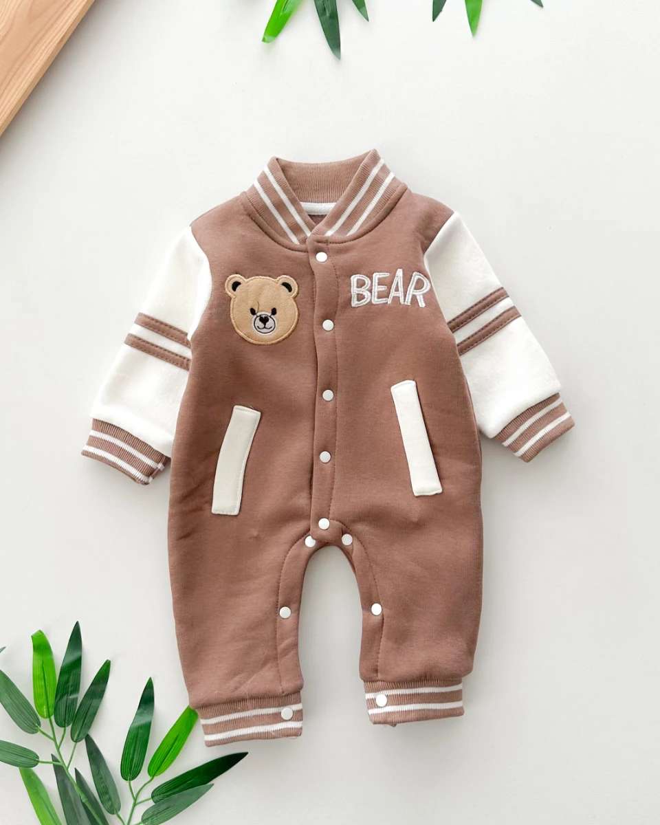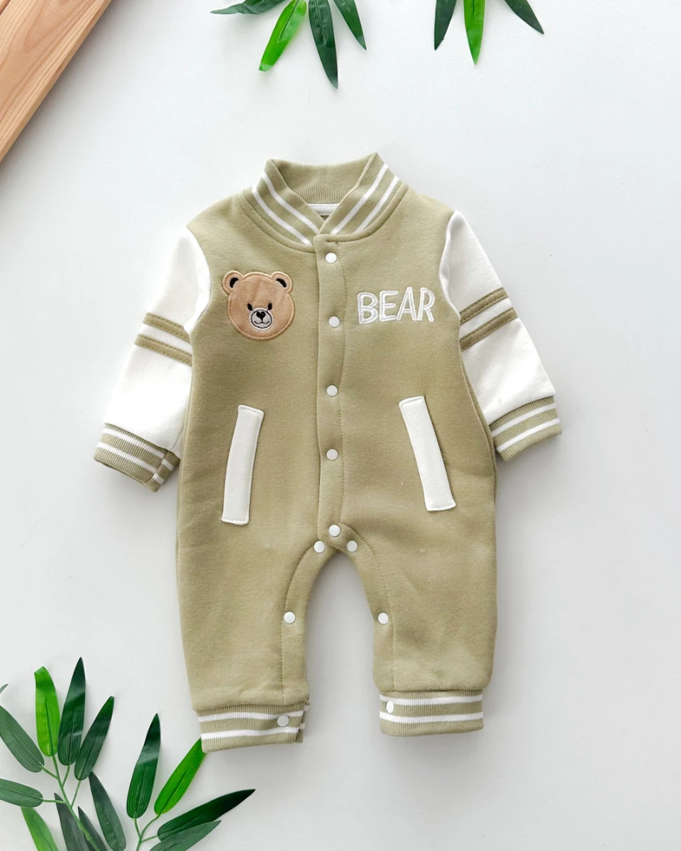 Bear yazılı sahte cep detaylı boydan çıtçıtlı şardonlu kışlık tulum