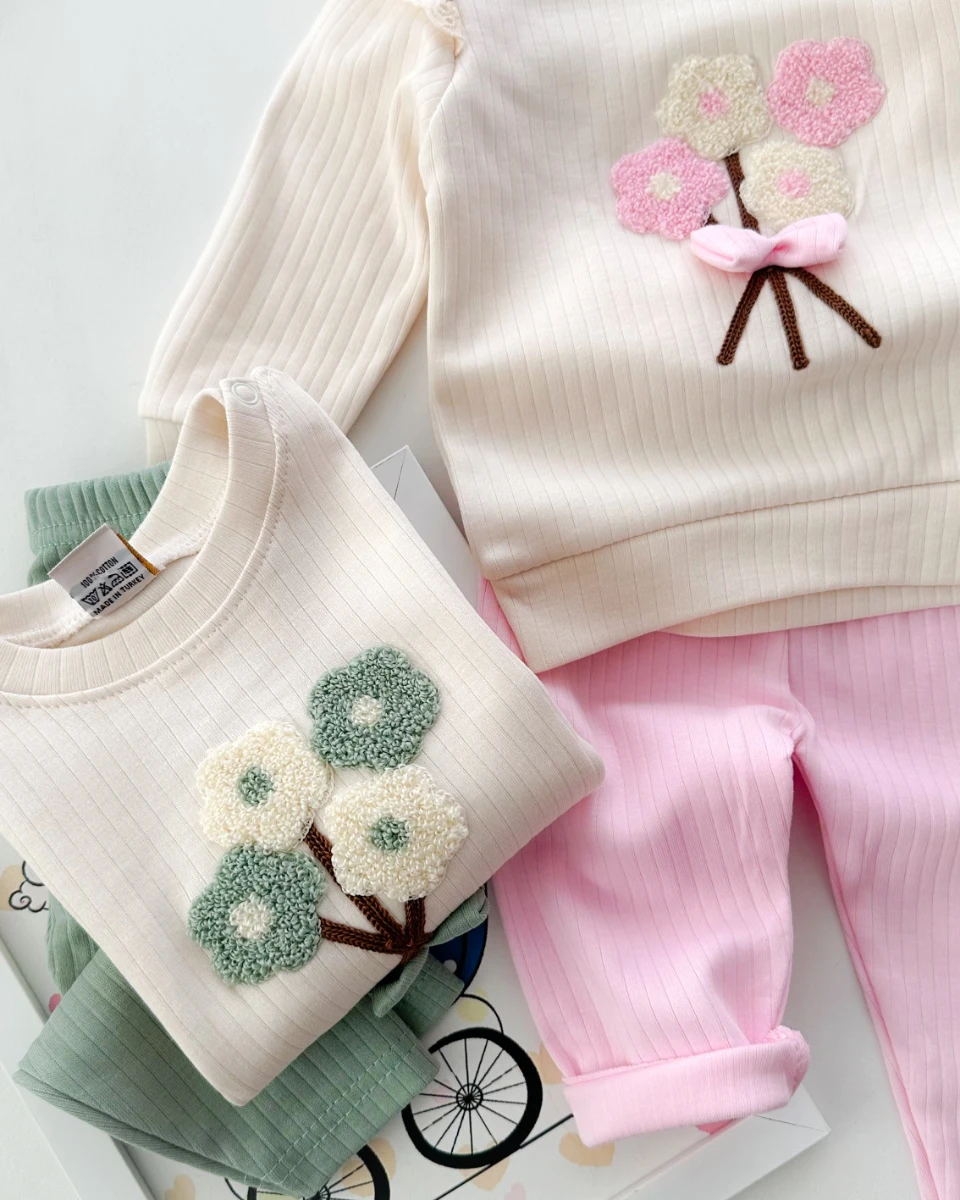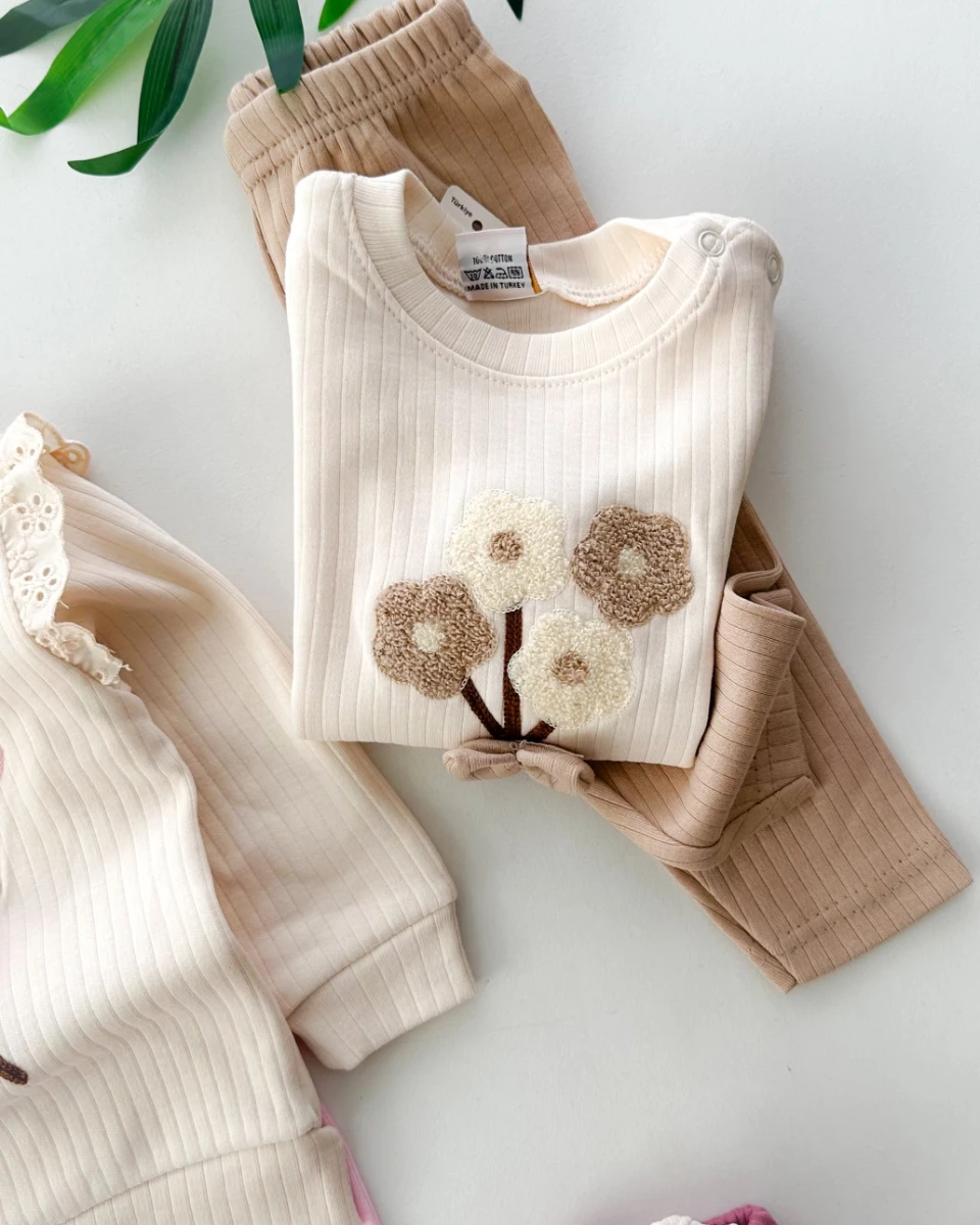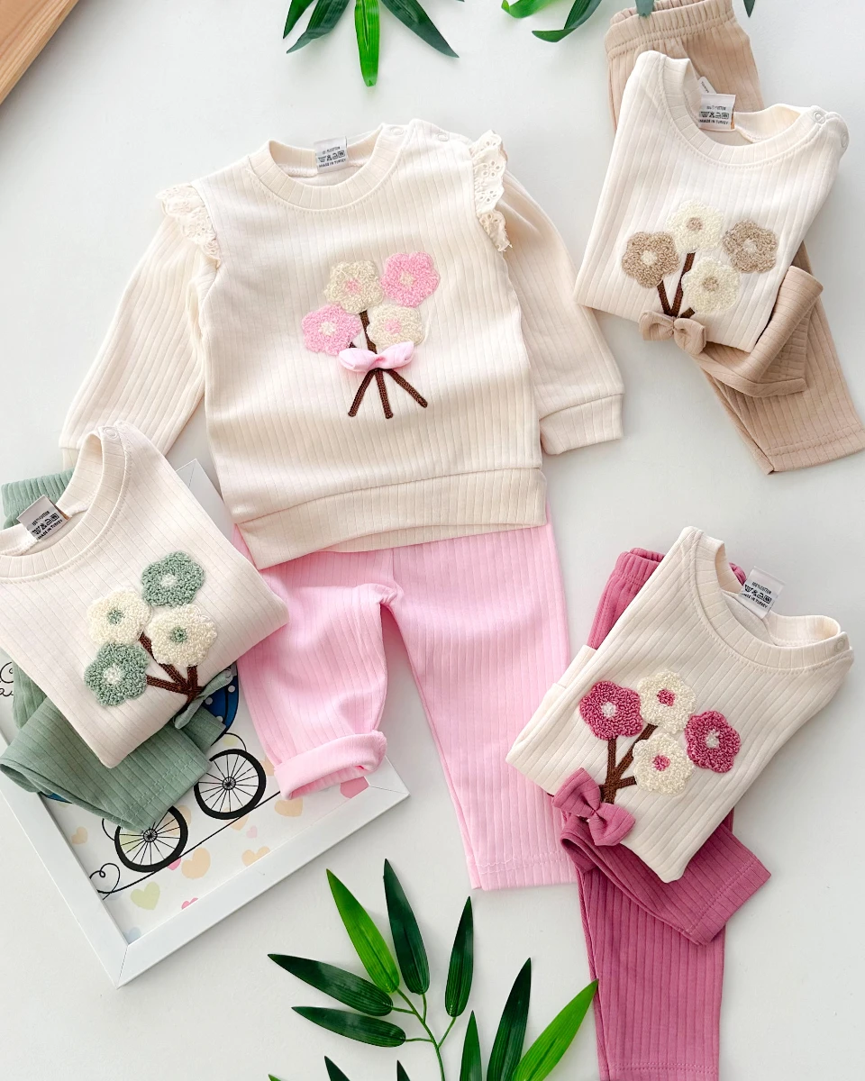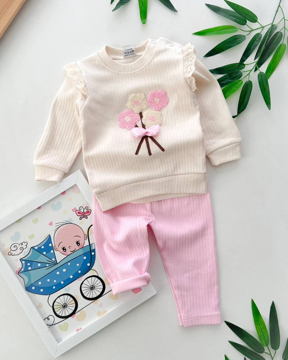 Çiçek punch işlemeli omuzları güpür detaylı fitilli kumaş mevsimlik 2 parça takım