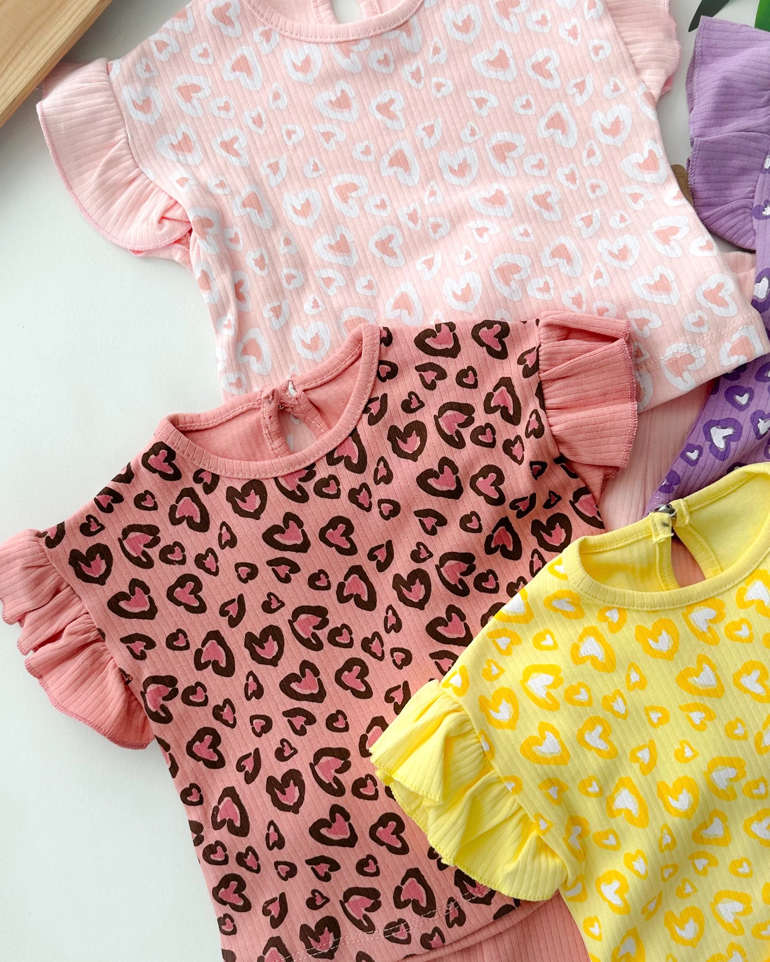 Damalı kalp desen arkadan düğme detaylı şortlu yazlık 2 parça set